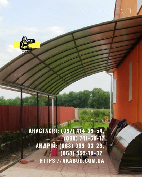 • Навіси для авто та дворів (профлист, полікарбонат, металочерепиця, профлист)