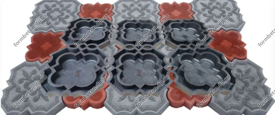 Это одна из самых красивых и дешёвых форм для тротуарной плитки, так как всего 11 пар на квадратный метр.